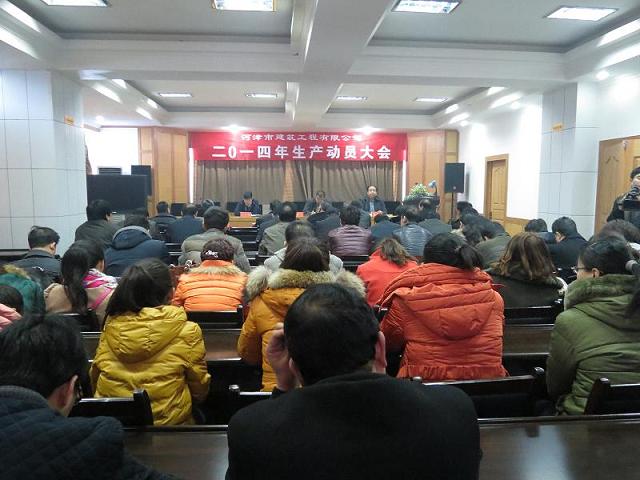 会议由党总支书记赵林河主持,公司董事长胡胜合代表董事会宣读了公司总经理班子任命文件,副总黄建荣宣读了各生产经营单位及机关各部室负责人任命文件,总经理卫少华作了《强化管理,调整结构做精做优;狠抓落实,突出优势做强做大》的生产动员报告,报告对2014年的工作提出了七点意见:一、抓项目管理突破,打造创新河建。二、抓安全管理突破,打造品牌河建。三、抓质量管理突破,打造品质河建。四、抓技术管理突破,打造科技河建。五、抓转型管理突破,打造多元河建。六、抓文明管理突破,打造文化河建。七、抓和谐管理突破,打造幸福河建。和谐聚合力,合力促发展。