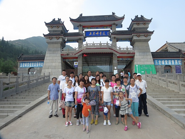 7月5日,公司组织机关干部员工到永济五老峰、解州关帝庙旅游参观。图为公司机关员工在五老峰景区门前合影。