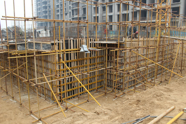 恒基碧园住宅小区二期工程12#楼目前已拔地而起,现已进入地下室施工阶段,图为地下室顶板钢筋施工。 (恒基碧园项目指挥部 杨佩佩)