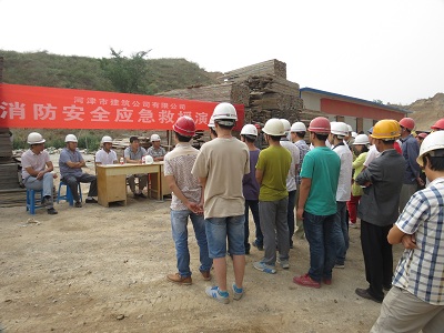 为切实开展好全国第14个“安全生产月”活动,做好在建工程消防安全工作,增强工地工人的消防安全意识和常识,加强应急预案管理、完善应急救援体系,提高项目部事故救援和应急处置能力,6月20日,公司在河津恒基碧园项目部施工现场开展了一场大型的消防应急救援演练活动,公司副总柴贵杰、工程部经理张军喜、恒基碧园项目经理闫俊康、项目指挥部副指挥冯永存等共计50余人观摩了演练。