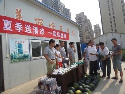 为保障施工一线员工健康,切实做好夏季防暑降温工作,确保劳动生产安全。公司工会按照市总工会的部署和要求,专门成立了由公司工会主席黄建荣任组长、公司副总兼工会副主席柴贵杰任副组长的“送清凉”活动领导小组,开展了为期一个月的情系职工、送清凉活动。