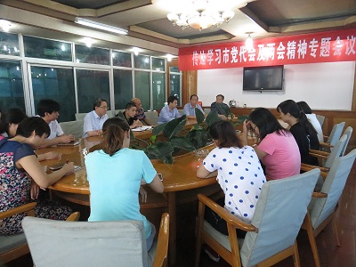 为深入贯彻学习市六次党代会工作报告和市委书记胡宝在闭幕式上的重要讲话,把广大党员干部群众的思想统一到党代会精神上来。近日,公司组织召开学习市党代会及两会精神专题会议。公司党总支书记薛青苗、副书记黄建荣、副总柴贵杰及全体干部职工40余人参加。会议由副书记黄建荣主持召开。