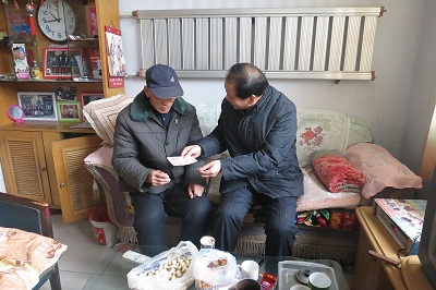 在新春佳节来临之际,为了使公司退休老职工过上一个幸福、祥和温暖的春节。1月18日,公司党总支副书记、工会主席黄建荣,总工程师张军喜,人力资源部经理马小红等领导带着公司全体人员的关怀和新春佳节的祝福,分成三组走访慰问了30名70岁以上退休老职工,为他们送去了食油、枣、大米和100元的祝寿金。
