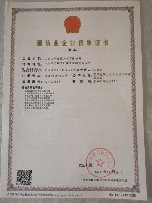 近日,在公司领导的高度重视下,市场管理部全体人员全力以赴、悉心筹备,公司各部门通力合作,5月20日,我公司消防设施工程、防水防腐保温工程和建筑幕墙工程三项专业承包二级资质审批通过。此三项资质的成功获取,标志着公司业务覆盖范围更加广泛,对树立公司品牌形象和提高市场竞争力具有十分重要的意义。